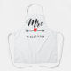 Mrs in calligraphy style black script font with a red heart and black arrow embellishments. Personalise with your name in black serif font.