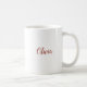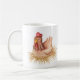 White mug with a hen or chicken in the front and the name in the oposite part. Personalise it with your own wording. Original illustration made by Patricia Alvarez in using Intense pencils.