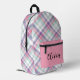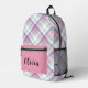 Lightweight and durable, our custom all-over-print Backpack is just what you need. The spacious interior is ideal for travel, school, gym, or any mobile storage need. Bring your stuff with you in style! Features Adjustable padded shoulder straps, two chambers on the inside for laptop storage, mesh side pockets and an identification label.