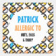 Personalised Multiple Food Allergies Kids Stickers. Pattern of food allergy symbols - no nuts, no peanuts, no gluten, no fish, no dairy and no eggs with black lines through on a white background. Centre has white circle with text to add name and allergens. Food allergy alert stickers are great for labelling safe foods, attaching to medicine kits, safe snacks, lunch boxes. Edit to change text colour or font style. Designs by Lil Allergy Advocates www.lilallergyadvocates.com