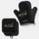 Personalised Mum Gift Black Gold Script Monogram Oven Mitt & Pot Holder Set
