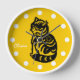 Mustard Yellow Cute Cat White Dots Custom Wall Clock - Your Name - or change to read whatever you like.To change colour click customise then edit. Use the last tool on the drop down - the little colour box - click it to choose from the colours shown or enter your RGB Hex Code for a one of a kind designer clock!