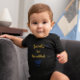 Celebrate your baby's first Festival of Lights with this sweet personalised Hanukkah bodysuit. Featuring a classic menorah design, hanging stars, and space to customise with your child’s name, this soft cotton bodysuit is perfect for commemorating this special milestone. The elegant gold and blue text stands out beautifully on white, making it a meaningful outfit for family gatherings, holiday photos, or gift-giving. Available in multiple sizes and easy to personalise, it’s a keepsake you’ll cherish for years to come.