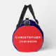 This duffel gear bag is a unique and fun gift for a sports player, team, or coach, or to bring your gear to the gym! 250th Anniversary 1776 to 2026, United States of America patriotic design on front, back, and one end. The other end has personalised name. A great milestone for the USA! Photo of American flags waving in the wind, and patriotic text make this a wonderful commemorative keepsake - a once in a lifetime event! Awesome gift for Independence Day, 4th of July, Memorial Day, Veterans Day picnic or BBQ. All Rights Reserved © 2025 Alan & Marcia Socolik.