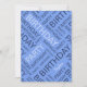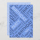 BIRTHDAY PARTY. The message on this invitation is clear! It uses the words BIRTHDAY and PARTY in a cool typographic design in blue, and you can personalise the front with a name in matching light blue script. On the reverse of the card there are lots of lines for details of the party, just type in the boxes to customise.