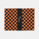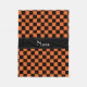 Modern and trendy Black and orange checkers pattern with black stripe personalised with your name gifts. Chequered gift ideas for men and women.