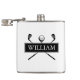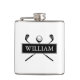 Personalised Name Black And White Clubs And Ball Hip Flask