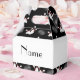 Modern and trendy Custom name sports black bowling balls and bowling pins pattern background and with white stripe personalised with just add your name gifts or monogram gifts or your initials for a unique gift. Sports gift ideas for men, women and boys and girls. Ideal for birthdays.
