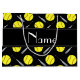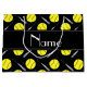 Modern and trendy Custom name sports baseball pattern with neon yellow softballs and aluminium bats on a black background and with black stripe personalised with just add your name gifts or monogram gifts or your initials for a unique gift. Sports gift ideas for men and boys and girls.