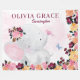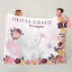 Gorgeous elephant with burgundy and pink blush flowers and pink splash watercolor background with personalised name and last name.