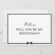 Asking your bridesman to join your wedding party has never been more stylish. Our minimalist bowtie-themed bridesman proposal card is perfect for those who appreciate classic design with a modern touch. Featuring a crisp black-and-white colour palette and a sophisticated bowtie detail, this card brings a timeless elegance to your wedding party proposal. It’s ideal for the bride looking to keep things simple yet meaningful. Customise the names to make your special moment even more personal. Whether you're planning a formal event or something laid-back, this card fits every occasion. Your bridesman will love the thoughtful, tailored approach.