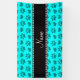 Personalised custom name bright aqua dog paw print pattern (animal print) and love hearts with a black diamonds stripe (not real diamonds) personalised with your name gifts or monogram gifts or your initials. Cute gifts for dog lovers and pet owners.
