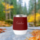 Personalised burgundy script wine tumbler. Modern, elegant, trendy wine tumbler.