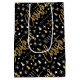 Personalised Name Christmas Script Black Faux Gold Medium Gift Bag