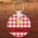 Personalised name cute pizza red chequered key ring