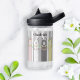 The product design features an illustration of retro colourful decorated llamas. This adorable animal design with white stripes makes a cute modern and unique water bottle with personalised text and background colour.