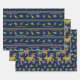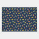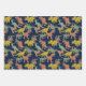 A set of three coordinated dinosaur gift wrap sheets in blue, yellow and green. Easily personalise the name and greeting with just a few clicks.