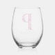 Personalised Name Elegant Pink Floral Monogram "P" Stemless Wine Glass