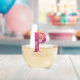 The design features the alphabet letter "P" in a pink floral pattern derived from a photograph of spring flowers, along with customisable script typography for name or other personalisation. Personalise this monogrammed stemless wine glass by adding the name or words of your choice to best suit your purpose or event!