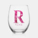 Personalised Name Elegant Pink Floral Monogram "R" Stemless Wine Glass