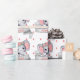 Template Personalised Name Elephant Baby Girl Pink and Grey with Heart Pattern White Wrapping Paper