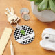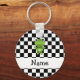 Create your own custom Personalised with a name,monogram, or initials or saying cute cartoon baby green frog with a black and white chequered pattern background and white stripe. Cute frog gift ideas for kids.