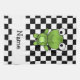 Create your own custom Personalised with a name,monogram, or initials or saying cute cartoon baby green frog with a black and white chequered pattern background and white stripe. Cute frog gift ideas for kids.
