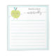 Modern From The Desk Of Notepad with Name. This design feature a handwritten script name and a cute smiling green apple on white background with aqua turquoise frame. You can customise this hand lettered script with your name. If you do not need personalise you can delete it. This lined notepad is a perfect gift idea for teachers and for her for any occasion. If you need help or matching item please contact to me. #3364