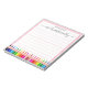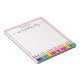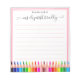 Modern From The Desk Of Notepad with Name. This design feature a swirly handwritten script name and at the bottom colourful pencils on white background with red double line frame. You can customise this hand lettered script with your name. If you do not need personalise you can delete it. This lined notepad is a perfect gift idea for teachers and for her for any occasion. If you need help or matching item please contact to me. #3364
