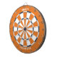 Dartboard with a orange, blue and white colour scheme with two lines of your personalised text such as the recipient's name and "Class of" graduating year. Great graduation gift for a high school grad entering college! Fun and functional decor for the dorm room full of school spirit!