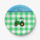 Personalised name green tractor green checkers paper plate