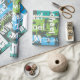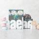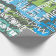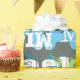 This design plays with texture and shades of blue and green. The background is a modern grey and the grunge fonts add a nice texture. The white fonts on top add contrast to the background. Personalise this gift wrap with a name. The colours make it perfect for a boy, tween, teenager or man. The design makes it great for a variety of occasions such as a birthday or father's day.