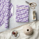 Personalised name and happy birthday wrapping paper for your mum. Simple repeat text pattern on a royal purple background.