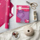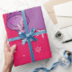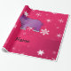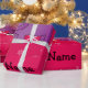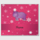 Create your own custom Personalised with just add your name (family name),monogram, greeting or initials or saying cute cartoon purple hippo with a pink snowflakes and dots Christmas pattern background and pink stripe. Cute hippo Christmas gift ideas.