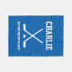 Personalised name ice hockey player fleece blanket. Future hockey player. Custom colour background with puck and sticks logo plus your name, surname, team name or funny quote. Cool sports gift idea for basketball player, coach, fan. Make one for new baby, nephew, son, grandson, daughter, granddaughter etc. Suitable for boys or girls.