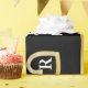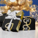 Add a special and personalised touch to your gift giving. An elegant, black & gold gift wrap with name personalisation and two hearts for initials. Great for wedding or anniversary.