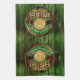Serve beer and whiskey at your own namesake Irish Pub. Create a treasured keepsake by inserting your first or last name into this clever Irish Pub template design. Features a banner with your family name, a gold seal with a glass stein of ale and two four-leaf clover shamrocks for good measure. Vintage wood-look background with a green stain and a round shape that looks like the end or top of a wood barrel. Sure to turn heads this St. Patrick's day and makes a great gift for guys or for him!