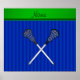 Personalised name lacrosse sticks blue stripes poster