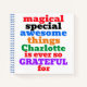 Magical, Special, Awesome Things, Charlotte is ever so Grateful for. Customisable Magical Gratitude Notebook. A special gift for a dear friend for her birthday or many other occasions. Colourful journal for taking note of the small things in life you are grateful for.