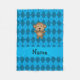 Personalised name monkey blue argyle fleece blanket