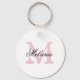 Personalised name monogram letter keychains. Vintage initial letter with elegant script typography. Cute favour gift idea for women and girls. Make your own monogrammed present for wedding, bridal shower, bachelorette, girls weekend, engagement, anniversary, birthday etc. Fun for bride to be, bridesmaid, maid of honour, flower girl, mother of the bride, mother of the groom etc. Pink and white.