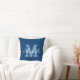 Personalised name monogram navy blue and white throw pillow. Personalizable cushion monogrammed with name and initial letter. Customisable background colour. Elegant script typography text design. Classy chic home decor for sofa chair couch or bed.