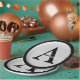 Personalise these silver metallic look button outlined in black round paper plates with any surname and single custom monogram.