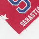 Cuddle up with a sports jersey-style blanket! This all-over pattern features a retro block font, stars, and is personalised with a monogram initial and name — perfect for individual names, family surnames or pet names. You can also customise the background colour by using the design editor tool. Custom fleece blankets are great for staying warm and cosy, and make a fun and useful gift for kids, teens, family, friends and loved ones. Printed colours: crimson red, dark blue navy and white.