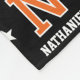 Cuddle up with a sports jersey-style blanket! This all-over pattern features a retro block font, stars, and is personalised with a monogram initial and name — perfect for individual names, family surnames or pet names. You can also customise the background colour by using the design editor tool. Custom fleece blankets are great for staying warm and cosy, and make a fun and useful gift for kids, teens, family, friends and loved ones. Printed colours: orange, black, and white.