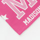 Cuddle up with a sports jersey-style blanket! This all-over pattern features a retro block font, stars, and is personalised with a monogram initial and name — perfect for individual names, family surnames or pet names. You can also customise the background colour by using the design editor tool. Custom fleece blankets are great for staying warm and cosy, and make a fun and useful gift for kids, teens, family, friends and loved ones. Printed colours: pink and white.