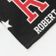 Cuddle up with a sports jersey-style blanket! This all-over pattern features a retro block font, stars, and is personalised with a monogram initial and name — perfect for individual names, family surnames or pet names. You can also customise the background colour by using the design editor tool. Custom fleece blankets are great for staying warm and cosy, and make a fun and useful gift for kids, teens, family, friends and loved ones. Printed colours: black, red and white.