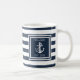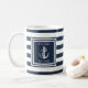 Personalised Name Navy Blue Stripe Nautical Anchor Coffee Mug