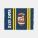 Yellow Gold stripes with navy blue background, team colours to root and cheer for the boys football squad! Great personalised gift for the sporty boy on or off the field. Support your league all-star with this awesome custom name and number American football blanket featuring brown pigskin ball and white name and number varsity text for the team player MVP!