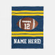 Personalised Name Number Gold/Navy Blue Football Fleece Blanket